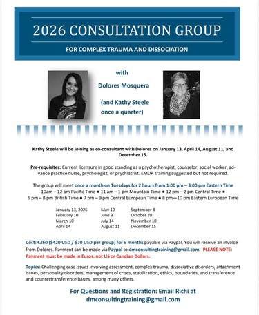 Focusing on complex trauma and dissociation, coordinated by Dolores Mosquera and featuring Kathy Steele as a co-consultant